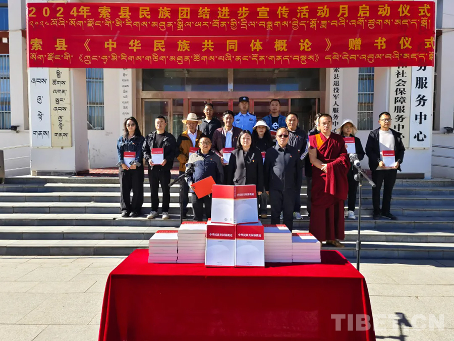 8月30日,西藏自治區(qū)那曲市索縣民族團(tuán)結(jié)進(jìn)步宣傳活動(dòng)月啟動(dòng)儀式舉行,同時(shí)開(kāi)展了《中華民族共同體概論》贈(zèng)書(shū)活動(dòng),全縣各族各界干部群眾代表共計(jì)100余人參加。此次啟動(dòng)儀式的舉辦,標(biāo)志著索縣民族團(tuán)結(jié)進(jìn)步宣傳活動(dòng)月正式拉開(kāi)帷幕。
