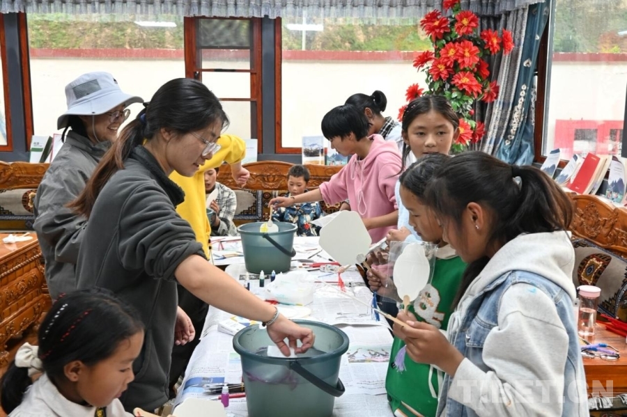 此外,支教同學還為孩子們帶來了各式各樣的科普課程和興趣課程。從“仿生學科技”到“認識星空”,從“彩虹泡泡龍”到“我與京劇動起來”,同學們帶領孩子們一起探索自然科學和人文世界。扭扭棒、創(chuàng)意花卉折紙、植物敲拓染和漆扇等手工課,充分發(fā)揮了孩子們的創(chuàng)造力及動手能力。