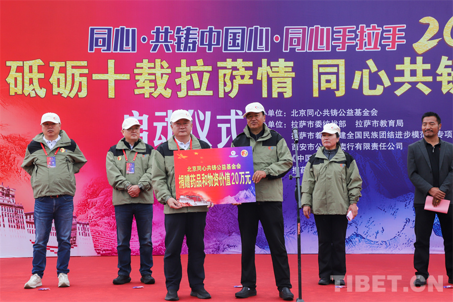 “同心?共鑄中國心”是由步長制藥發(fā)起,中央統(tǒng)戰(zhàn)部、國務(wù)院僑辦和國家衛(wèi)生健康委員會(huì)指導(dǎo),中國西藏文化保護(hù)與發(fā)展協(xié)會(huì)和北京市紅十字基金會(huì)聯(lián)合主辦的大型公益活動(dòng)。為響應(yīng)黨中央提出的“健康中國 精準(zhǔn)扶貧”的戰(zhàn)略部署,在中央統(tǒng)戰(zhàn)部的支持下,在同心共鑄公益基金會(huì)的指導(dǎo)下,自2014年啟動(dòng)“同心·共鑄中國心·同心手拉手”活動(dòng),以全國醫(yī)藥零售行業(yè)、流通商業(yè)志愿者為主,以困難家庭學(xué)生為主要資助對(duì)象,開展定點(diǎn)、定向的愛心志愿服務(wù)。(中國西藏網(wǎng) 記者/賈華加 德吉卓瑪)