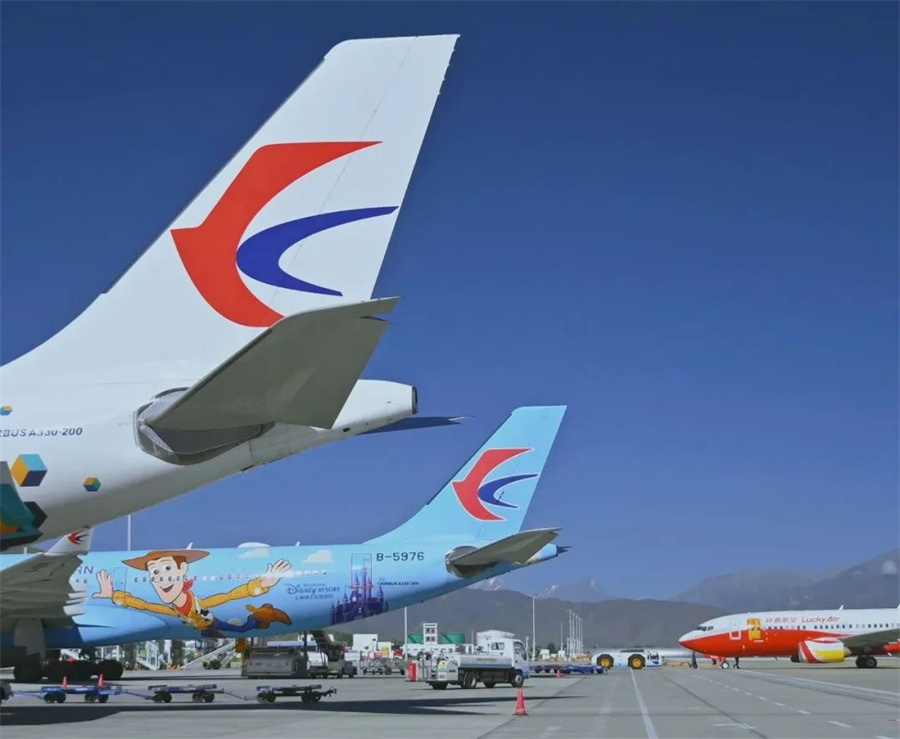 圖為拉薩貢嘎國際機(jī)場(chǎng)機(jī)坪保障現(xiàn)場(chǎng)
