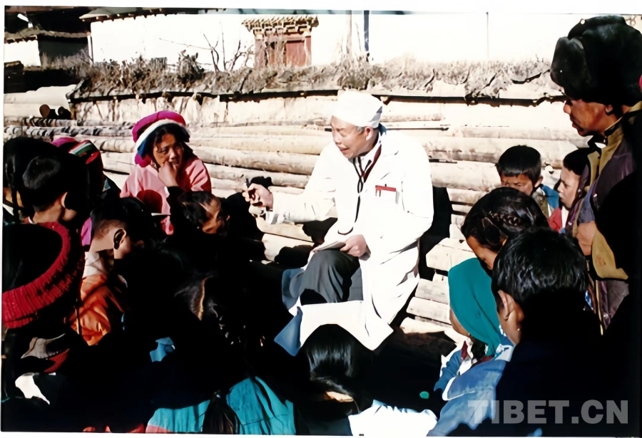圖為訪談對(duì)象楊公衍(中間)為迪慶群眾義診 供圖:李志農(nóng)