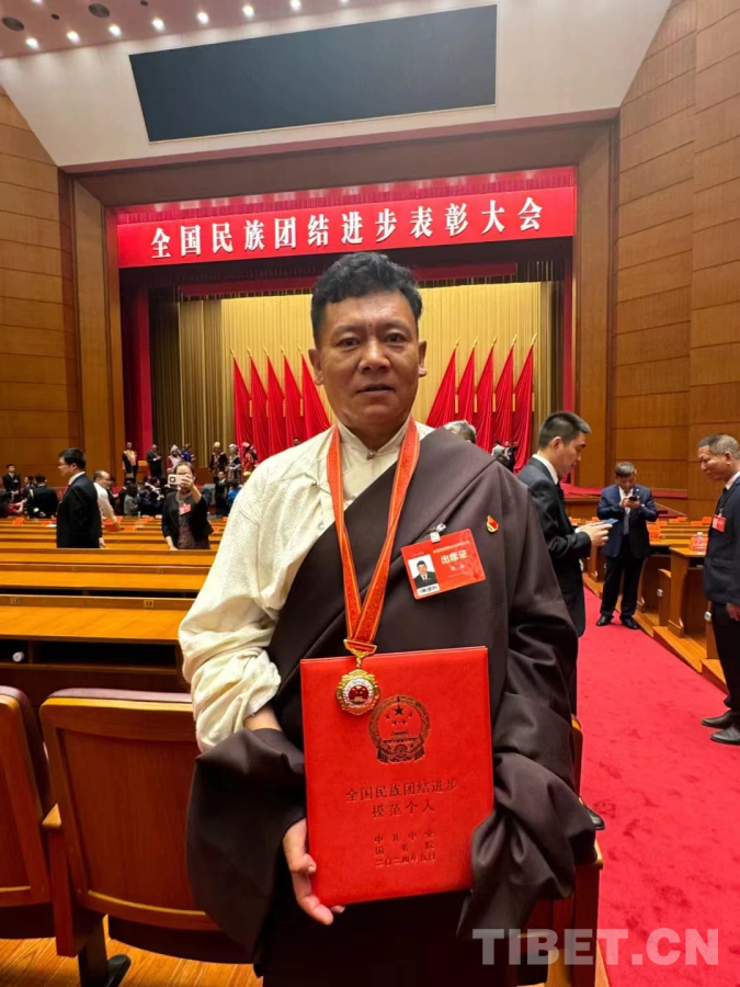 圖為全國民族團結(jié)進步模范個人獲得者桑珠