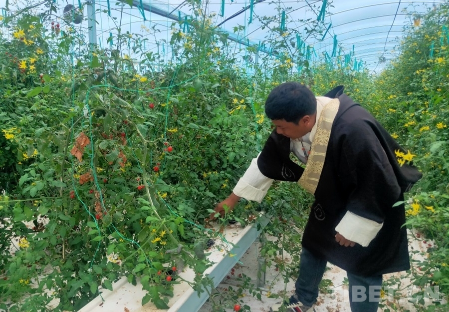中國(guó)西藏網(wǎng)訊 “我今年34歲,是村里的大學(xué)生,從去年開始在這里工作。”江永澤仁來自昌都市八宿縣旺比村,是八宿縣物聯(lián)網(wǎng)高效植物工廠的生產(chǎn)管理員?!拔覀兩a(chǎn)的圣女果主要在縣里銷售,收益很好。這邊固定員工有三位大學(xué)生和兩位旺比村村民。果子采摘的時(shí)候,忙不過來,我們還需要再多找些村民來幫忙,每天能給到160元的工資?!闭勂鹱约核诘闹参锕S,江永澤仁語氣中的滿意和驕傲溢于言表?!懊髂晡覀冞€要計(jì)劃種植藍(lán)莓呢,已經(jīng)有同事到山南去參加相關(guān)培訓(xùn)了。”