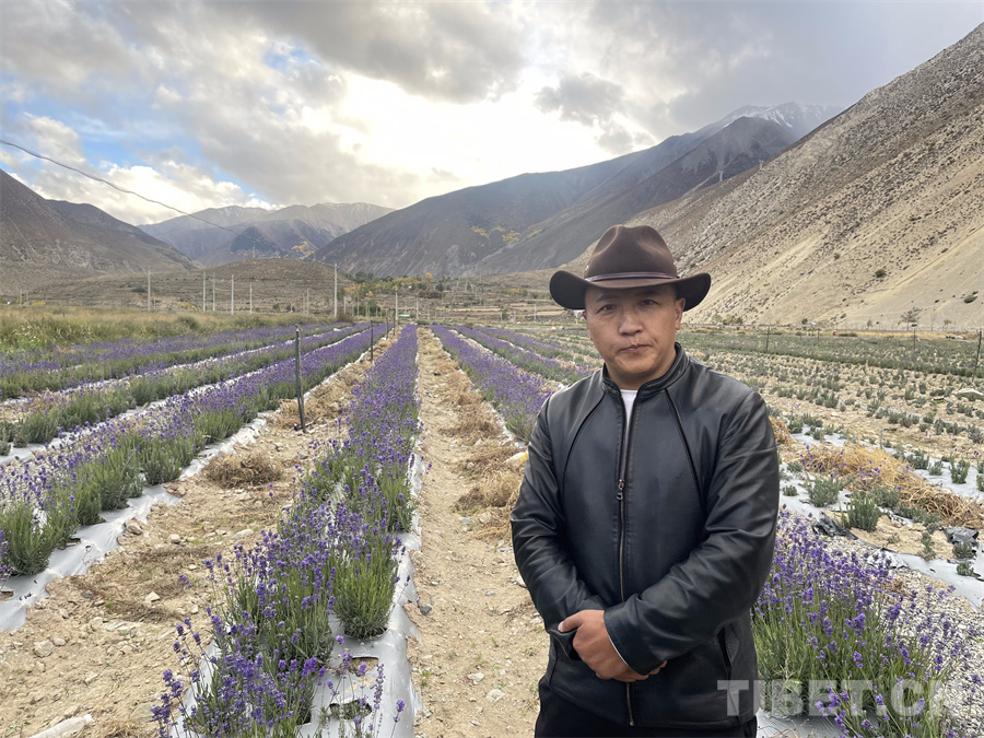 圖為八宿縣吉達(dá)鄉(xiāng)黨委書(shū)記仁青貢布站在大片的薰衣草田間 攝影:王妍丹
