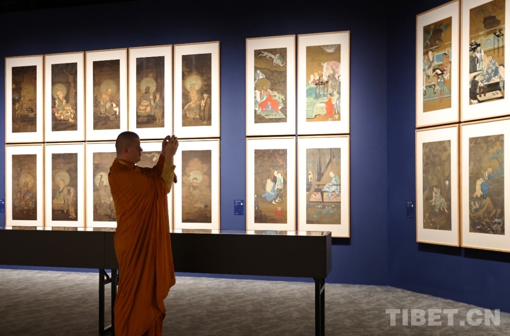 圖為與會者參觀“翰墨佛緣——‘中國歷代繪畫大系’佛教藝術(shù)珍品展”