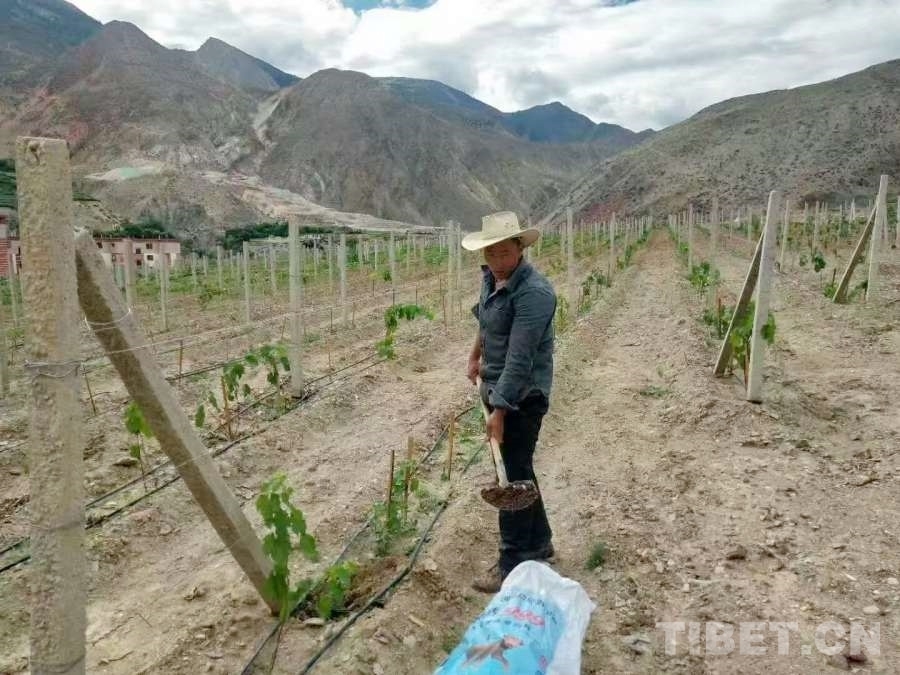 在風景如畫的八宿縣林卡鄉(xiāng)孜嘎村,有一片占地面積200畝的葡萄種植基地,也是昌都市海拔最高的葡萄種植基地。2016年,八宿縣計劃建立葡萄種植基地,來自芒康縣納西民族鄉(xiāng)的次成江措在項目中標后成為該基地的負責人。在次成江措的家鄉(xiāng)芒康,種植葡萄已經有200多年的歷史。從小耳濡目染,使他成為遠近聞名的葡萄種植專家。剛接到這個項目時,由于對八宿縣地理環(huán)境不甚了解,次成江措內心并沒有十足的把握。隨后,他從家鄉(xiāng)帶來優(yōu)質葡萄品種“黑珍珠”,驚喜地發(fā)現得益于八宿縣海拔較高、紫外線充足、降雨量較少的優(yōu)勢條件,“黑珍珠”的生長情況超出了他的預期,甚至不需要使用農藥。