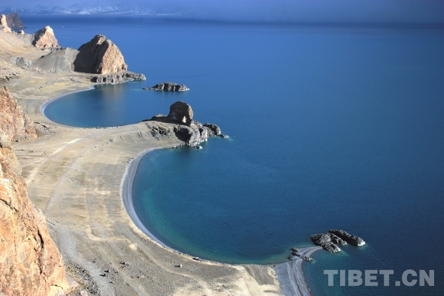 中國西藏網訊 納木錯湖水湛藍,湖面波光粼粼,圣象天門矗立在納木錯北岸,遠處的雪山綿延,靜謐,祥和。