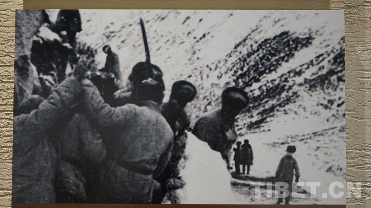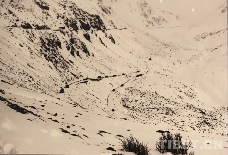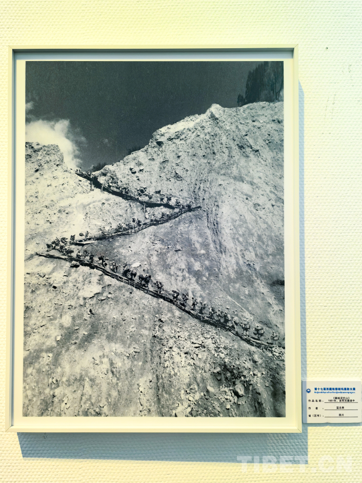 圖為第17屆西藏珠穆朗瑪攝影大展展出的藍(lán)志貴于1951年進軍西藏途中所拍攝的《翻越泥巴山》 翻拍:王淑