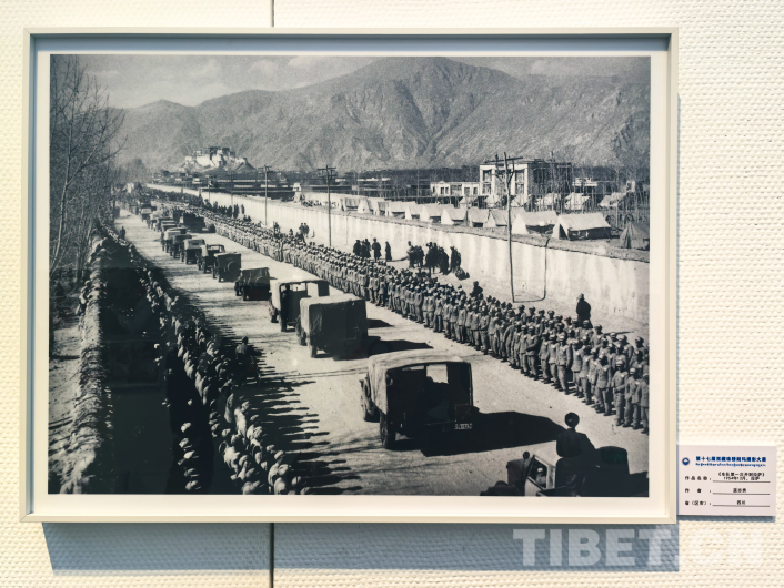 圖為第17屆西藏珠穆朗瑪攝影大展展出的藍(lán)志貴于1954年12月所拍攝的《車隊第一次開到拉薩》 翻拍:王淑