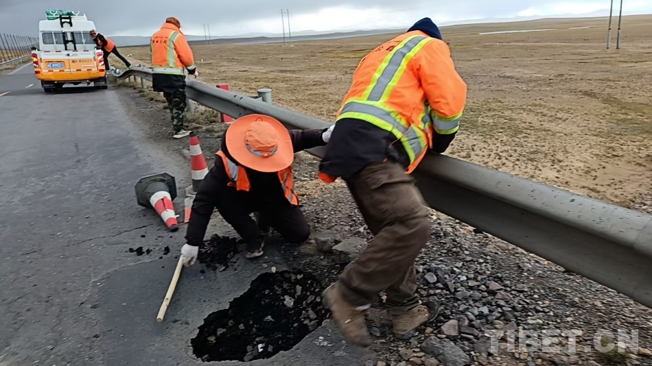 受低溫限制,唐古拉山路段的油路養(yǎng)護(hù)季節(jié)性非常強(qiáng),每年的5至10月是養(yǎng)護(hù)的黃金時(shí)間。為了能在有限的時(shí)間內(nèi)更好地養(yǎng)好公路,每年這個(gè)季節(jié),我和工友們都要在凌晨四五點(diǎn)出發(fā),一絲不茍地進(jìn)行日常巡查,對(duì)破損的路面進(jìn)行及時(shí)修補(bǔ)。每天工作超過(guò)十個(gè)小時(shí),餓了吃些糌粑,渴了喝點(diǎn)酥油茶,累了就靠在車(chē)上休息一會(huì)兒。春天,我們處理路面裂縫;夏天,我們清理塌方;冬天,我們與冰雪戰(zhàn)斗。我們?nèi)硇耐度?,用青春和汗水守護(hù)這條公路,確保這條至關(guān)重要的運(yùn)輸動(dòng)脈能夠抵御極端惡劣氣候的考驗(yàn),讓每一輛過(guò)往車(chē)輛都能安全順暢通行。