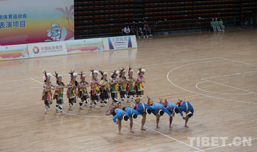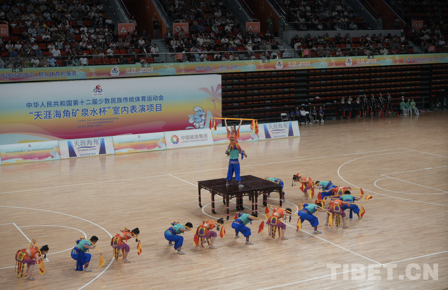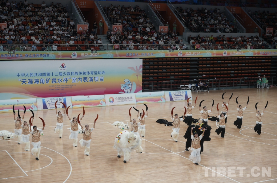 中國西藏網訊 11月24日,第十二屆全國少數民族傳統(tǒng)體育運動會表演項目(室內)在海南省三亞市體育中心體育館舉行。(中國西藏網 記者/蘇洋)