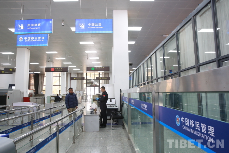 圖為12月1日,吉隆口岸聯(lián)檢大廳正式啟用新版對(duì)外開放口岸出入境邊防檢查現(xiàn)場標(biāo)志 攝影:肖富貴