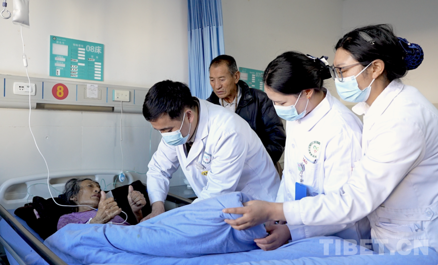 12月1日,若爾蓋縣人民醫(yī)院內(nèi),值班外科醫(yī)生仁青奪機(jī)正為一名患有膽囊結(jié)石的住院病人進(jìn)行常規(guī)病情摸查。談及就醫(yī)現(xiàn)狀,病人家屬澤讓甲很是感激:“很感謝這里的醫(yī)生,他們醫(yī)術(shù)很好,也很積極地進(jìn)行治療,而且現(xiàn)在我們也不用長途跋涉地去看病了,很方便?!?nbsp;