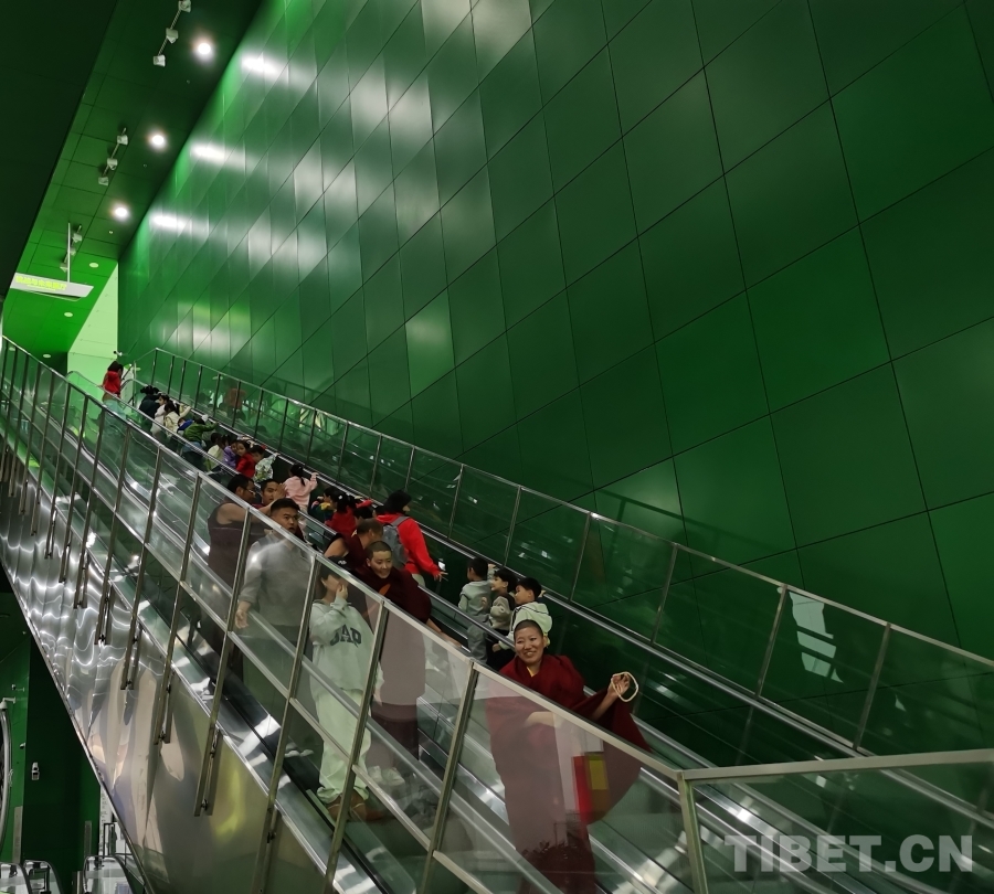 當(dāng)日下午,西藏佛學(xué)院一行來(lái)到中國(guó)科學(xué)技術(shù)館參觀學(xué)習(xí)。走進(jìn)展廳,師生們立即被展陳的航天器材吸引,紛紛上前合影留念。科技館內(nèi)有很多孩子正在參觀,部分外向的孩子熱情地與西藏佛學(xué)院師生們打招呼,師生們也歡喜地回應(yīng)著。雙向扶梯上,孩子們熱情洋溢地上行,恰逢佛學(xué)院的師生們下行,彼此擦肩而過、揮手示意。