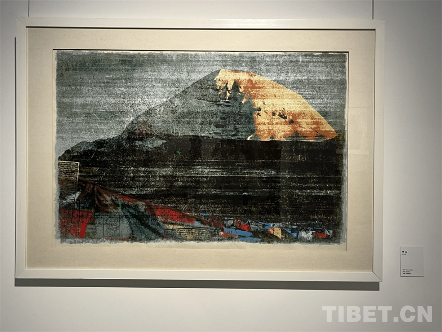 李小可曾說過:“我迷戀版畫手工制作的過程,這個過程實際上是你擁有一次再參與和再表達(dá)的機會?!贝舜握褂[活動總策劃、李小可夫人劉瑩回憶著丈夫說過的話,并向參觀師生介紹,這些作品“采用絲網(wǎng)的方式,每張版畫都需要刮十幾版甚至幾十版,一次次、一遍遍地疊加、累積而成。創(chuàng)作的過程是李小可對西藏的情感宣泄的行為,是他將這塊土地、人民給予他感動跡化的行為?!?/p>