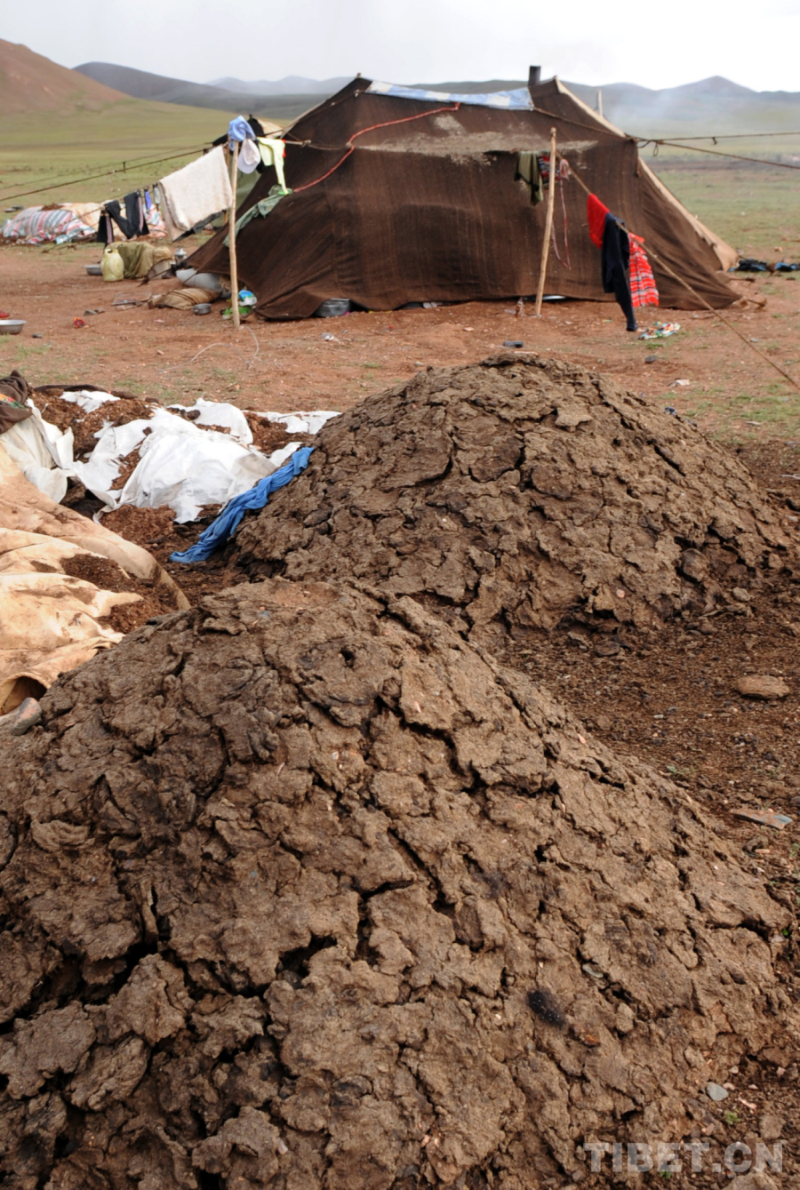 如果說,西藏是“世界屋脊”,那么藏北就是“世界屋脊的屋脊”,由于這里空氣含氧量僅有平原的一半,較低的含氧量很不利于燃料的充分燃燒。牦牛糞由于其黏性成分被牦牛在體內(nèi)消化吸收后,剩下的纖維物質(zhì)疏松通透,增加了與空氣的接觸面積,使燃燒完全徹底,是數(shù)千年來難得的燃料。