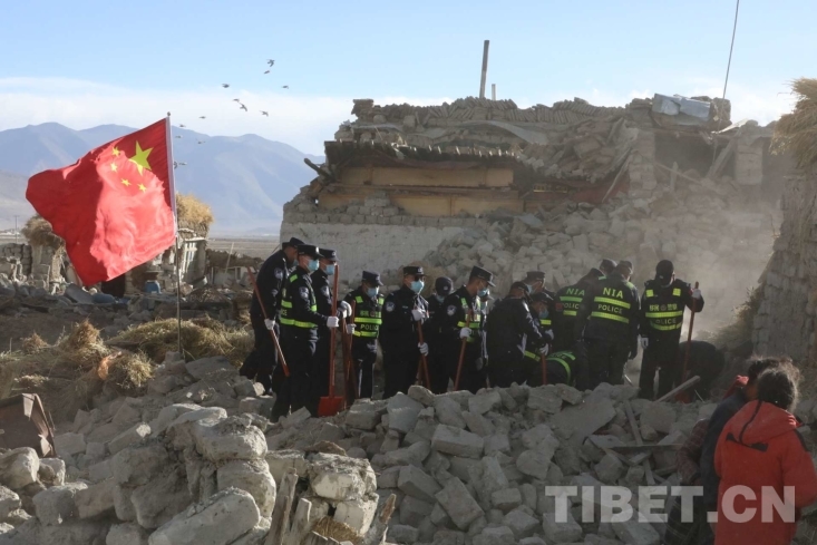 中國西藏網(wǎng)訊 1月7日9時5分,在西藏日喀則市定日縣措果鄉(xiāng)附近發(fā)生6.8級地震,震源深度10千米。西藏出入境邊防檢查總站移民管理警察在西藏日喀則市定日縣長所鄉(xiāng)玉白村參與救援及安置工作。五星紅旗之下,是國家對災(zāi)區(qū)群眾的守護(hù),亦是災(zāi)區(qū)群眾對黨和國家救援力量的期盼。有五星紅旗的地方就有信念的燈塔,這是災(zāi)區(qū)一線的守望?。ㄖ袊鞑鼐W(wǎng) 通訊員/郭遠(yuǎn)敬)