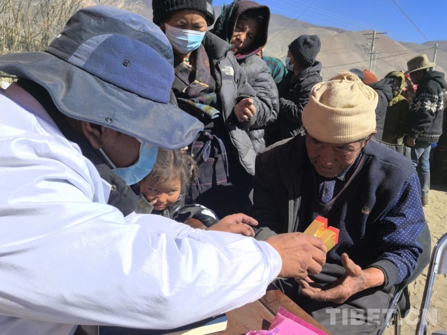 圖為來自西藏自治區(qū)日喀則市的藏醫(yī)赤列正在為受災群眾義診 攝影:王淑