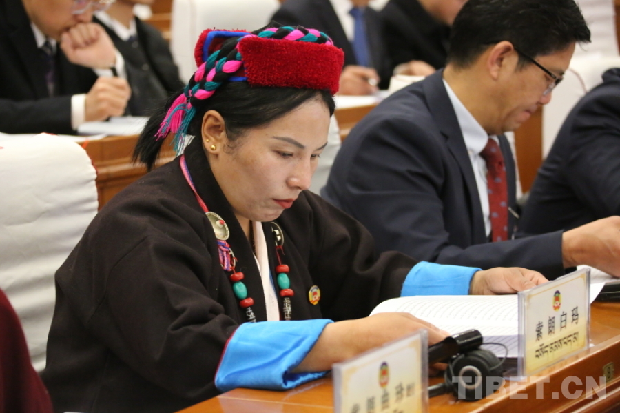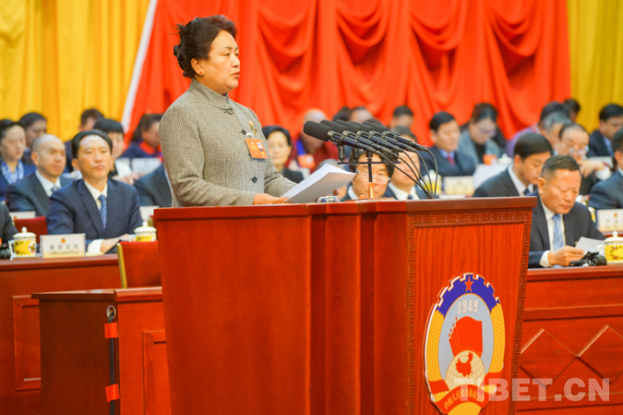 圖為受政協(xié)第十二屆西藏自治區(qū)委員會(huì)常務(wù)委員會(huì)委托,西藏自治區(qū)政協(xié)黨組成員、副主席卓嘎向大會(huì)報(bào)告政協(xié)十二屆二次會(huì)議以來(lái)的提案工作情況 攝影:趙振宇
