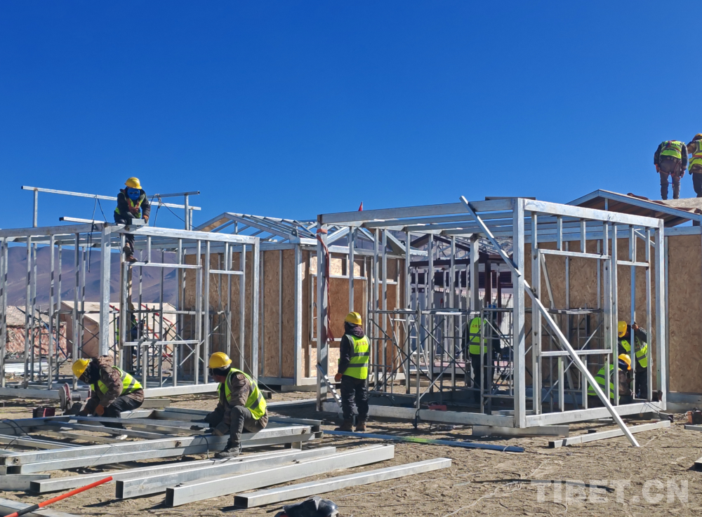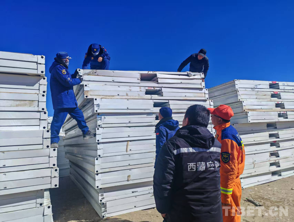 圖為西藏應急管理廳統(tǒng)籌板房搭建工作