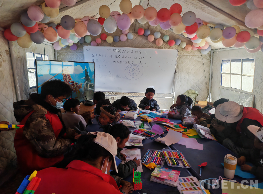 圖為地震災區(qū)中的兒童托管課堂