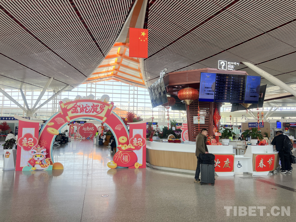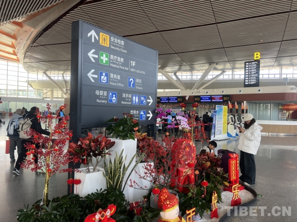 中國西藏網(wǎng)訊 新春的樂章即將奏響,拉薩貢嘎國際機(jī)場盛裝以待,用別出心裁的春節(jié)景觀設(shè)計(jì),為過往旅客呈上一場充滿新意的新春盛宴,讓節(jié)日的喜慶在旅途中盡情流淌。(中國西藏網(wǎng) 記者/趙振宇)