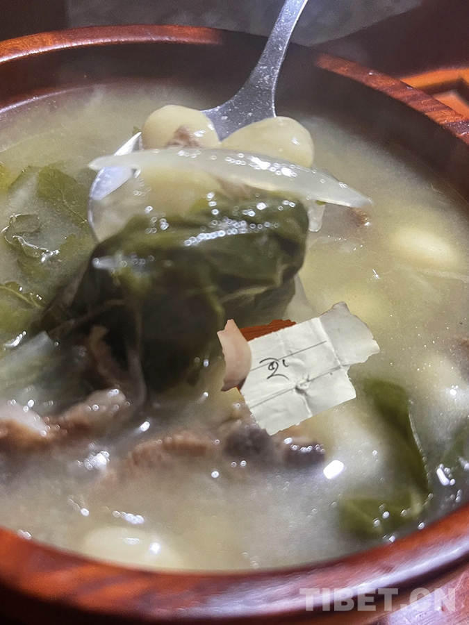 到了晚上,家人們會(huì)圍聚在一起吃“古突”——一種面疙瘩湯。在制作過(guò)程中,我們會(huì)在面皮里包一些有著特殊寓意的物品,例如:辣椒、羊毛、鹽巴、花椒等。在吃飯時(shí),吃到不同東西的人要當(dāng)場(chǎng)說(shuō)出自己吃到的是什么,并對(duì)其中的寓意做講解,同時(shí)表達(dá)自己在新的一年的愿望、期盼和目標(biāo)。這個(gè)活動(dòng)不僅給家人們帶來(lái)祝福,最重要的是增添了歡樂的氛圍。