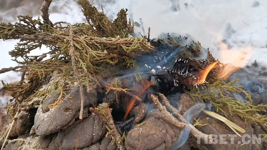 大年初三要早起敬山神。在出發(fā)的前一天,要準(zhǔn)備好獻(xiàn)祭的牛奶、青稞酒、清茶,還有“?!薄⑾?、隆達(dá)、哈達(dá)等。