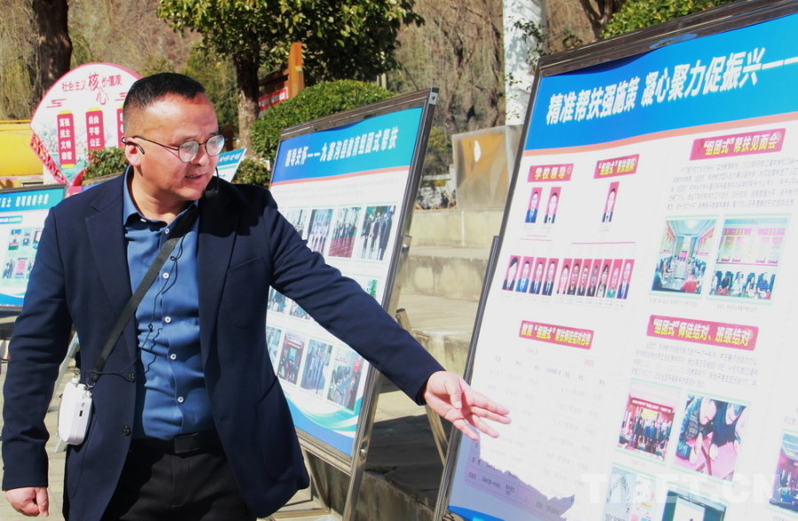 圖為來自四川省都江堰中學(xué)、現(xiàn)任九寨溝縣中學(xué)校校長的李智介紹九寨溝縣組團式教育援藏成果 攝影:劉莉