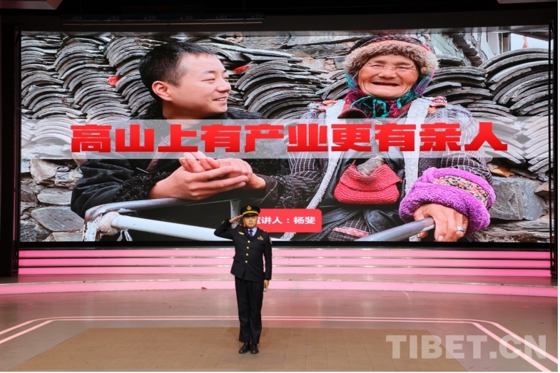 圖為楊斐在甘孜康定宣講援藏故事 攝影:龍真多吉