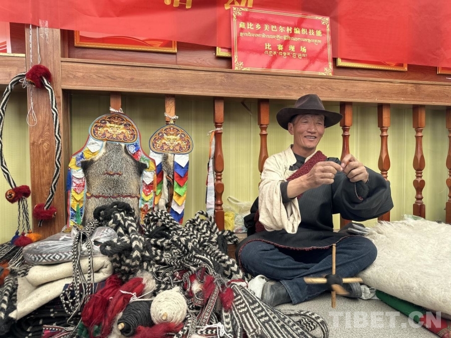 圖為藏比鄉(xiāng)美巴爾村編織技能比賽現場