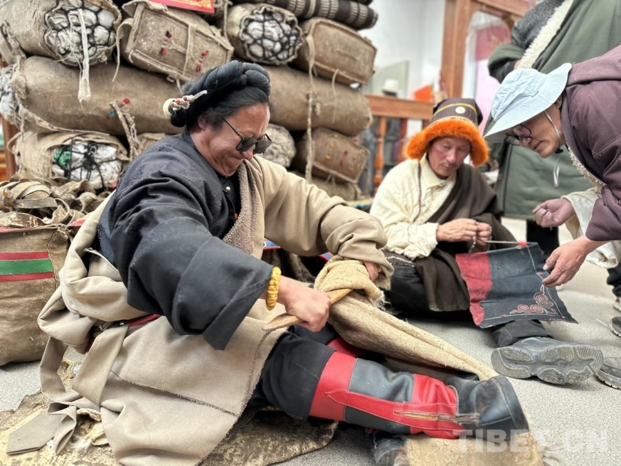圖為藏比鄉(xiāng)美巴爾村皮具制作比賽現場
