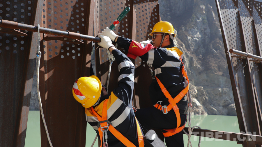 高空峽谷風急聲勁,每一位加查路橋維修工區(qū)上拱的職工都要經(jīng)歷身體因恐高眩暈和不適,再到逐步適應(yīng)和習慣,最終喜歡爬到橋的最高處眺望雅魯藏布江蜿蜒而過的過程。