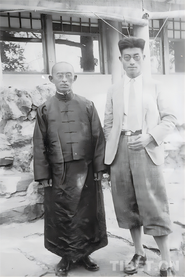 圖為1933年于道泉先生(右)在北京與西藏僧人土登堅參合影(喜饒尼瑪供圖)
