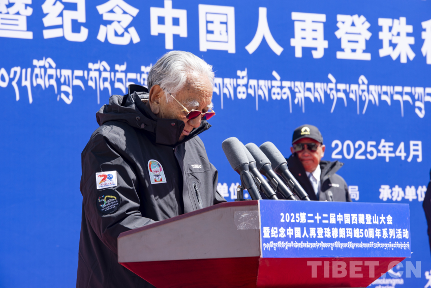 圖為老登山家代表、1975年中國(guó)人再登珠峰成員、珠峰“九勇士之一”羅則致辭 攝影:趙振宇