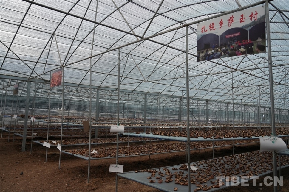 “嘿——嘿喲嗬——嘿喂——”在種植白肉靈芝的大棚里,幾個小伙子邊用鐵锨平整土地,邊哼唱著“勞動號子”。員工普布扎西停下手中的鐵锨,綻開笑臉,跟記者解釋說:“邊唱歌邊干活,互相加油打氣,就不會覺得累了?!倍诖笈镆粋?cè)的女生組也忙得熱火朝天,一個個圓墩墩的白色菌包被整齊地按插入土中。