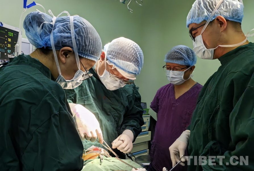 圖為火箭軍特色醫(yī)學(xué)中心口腔科主治醫(yī)師張曉然(左二)與阿壩州人民醫(yī)院口腔科團(tuán)隊(duì)合作,為腭裂患兒實(shí)施腭裂修補(bǔ)手術(shù),阿壩州人民醫(yī)院院長(zhǎng)、主任醫(yī)師楊林(右二)前來(lái)觀摩手術(shù)