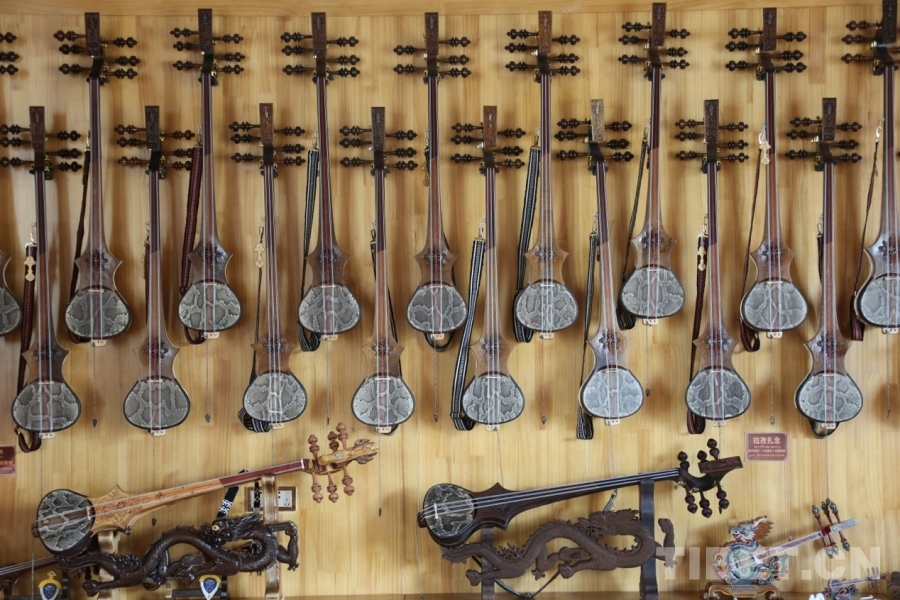 作為“堆諧之鄉(xiāng)”拉孜縣的代表性樂器,扎念琴制作已有數(shù)百年歷史。合作社負(fù)責(zé)人頓加介紹,一把純手工扎念琴需選用楊木做共鳴箱、花梨木制琴桿,經(jīng)過刨削、雕鏤、蒙皮等20余道工序,一個(gè)人耗時(shí)6天左右方能完成?!扒兕^雕馬象征吉祥,背面‘巴絡(luò)'凸紋既美觀又防滑,這些都是祖輩傳下的智慧?!比缃?,這項(xiàng)非遺技藝通過“致富帶頭人+合作社+農(nóng)戶”模式,年生產(chǎn)扎念琴超500把,帶動(dòng)社員人均年收入達(dá)4.5萬元。