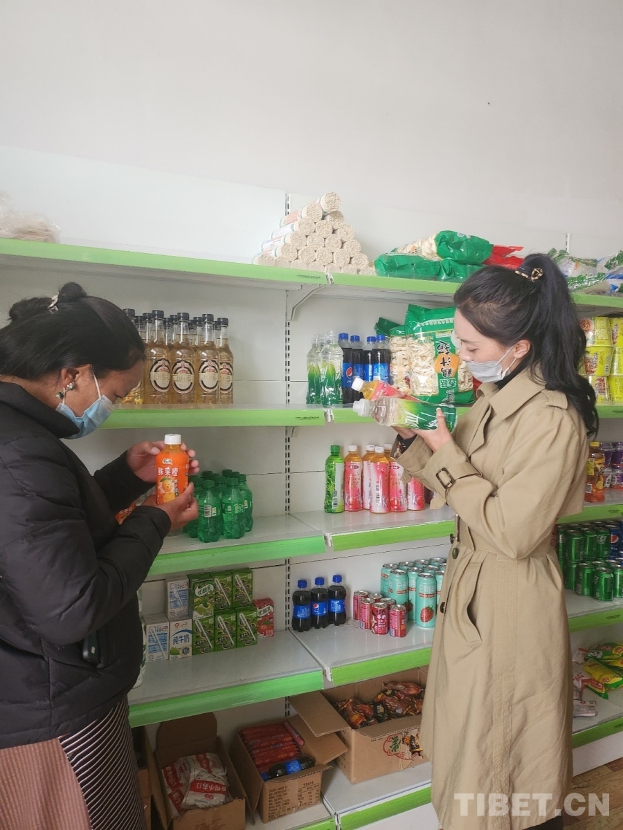 圖為次仁嘎措在村小賣部檢查食品保質(zhì)期 受訪者供圖