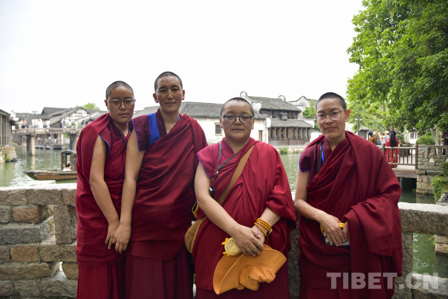 圖為西藏佛學(xué)院師生在浙江桐鄉(xiāng)烏鎮(zhèn)感受江南水鄉(xiāng)魅力 攝影:趙振宇