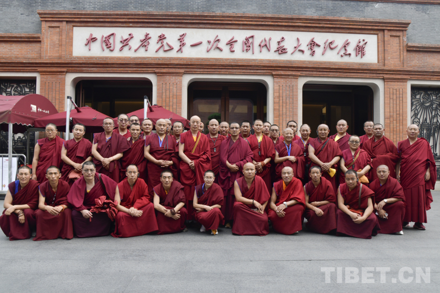 圖為西藏佛學(xué)院師生在中共一大紀(jì)念館前合影留念 攝影:趙振宇