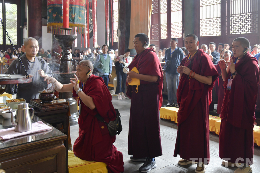 圖為西藏佛學(xué)院師生在杭州靈隱寺祈福 攝影:趙振宇
