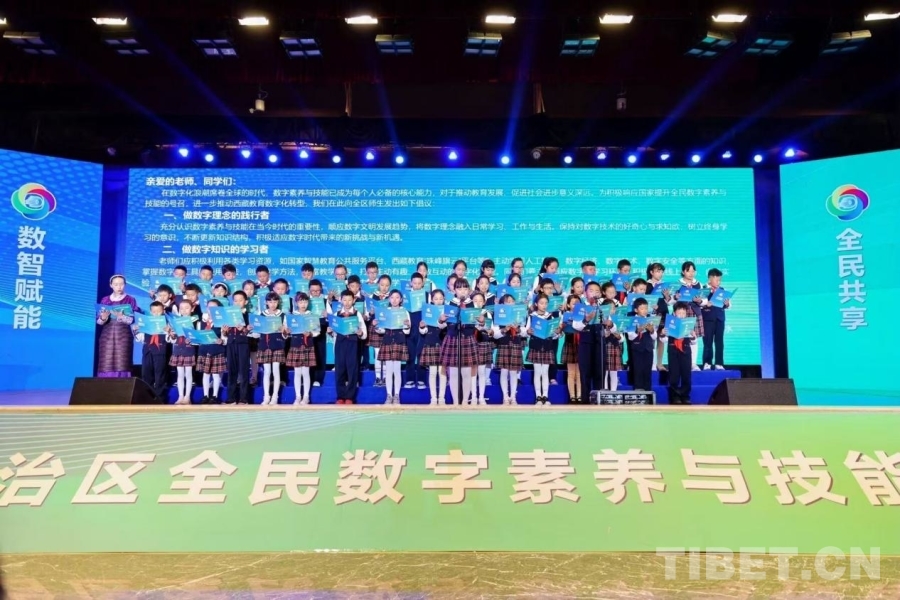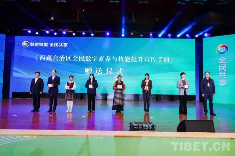啟動儀式上,活動主辦方為社會各界代表贈送了國家通用語言文字版本、藏語版本的《西藏自治區(qū)全民數字素養(yǎng)與技能提升宣傳手冊》;為西藏自治區(qū)全民數字素養(yǎng)與技能提升典型案例(網絡作品)頒發(fā)證書;為第二批自治區(qū)級全民數字素養(yǎng)與技能培訓基地授牌。社會各界代表圍繞數字賦能作主題分享,師生代表向全區(qū)師生發(fā)出“提升師生數字素養(yǎng)與技能 共建共享數字化發(fā)展成果倡議書”。