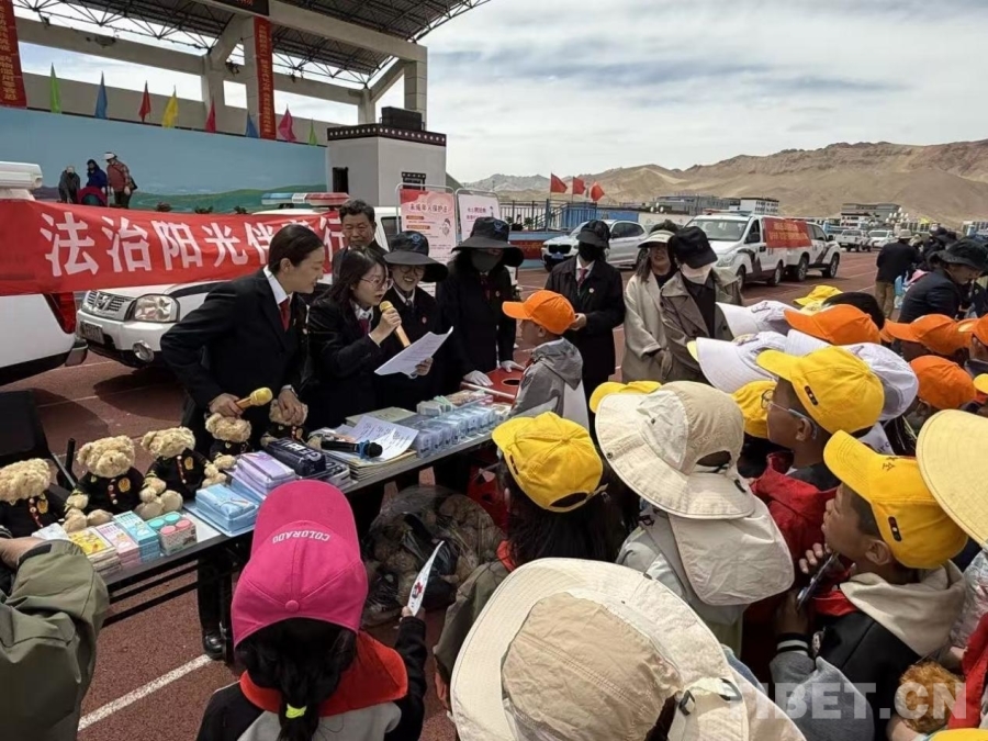 圖為今年5月底,維權(quán)工作站走進阿里地區(qū)陜西實驗學校開展普法宣傳活動現(xiàn)場 來源:阿里法院微信公眾號