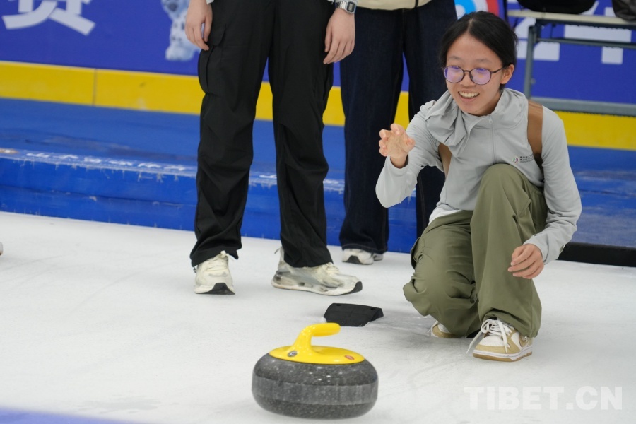 圖為曲文苑在體驗冰壺運(yùn)動 攝影:馮重霖