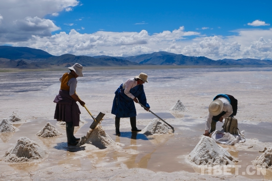 圖為革吉縣牧民在采鹽