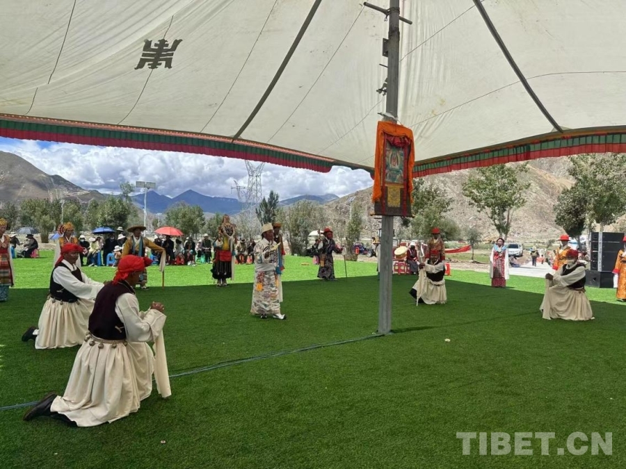 圖為日喀則南木林縣非遺林公園內(nèi)的湘巴藏戲展演吸引了大批觀眾駐足觀看