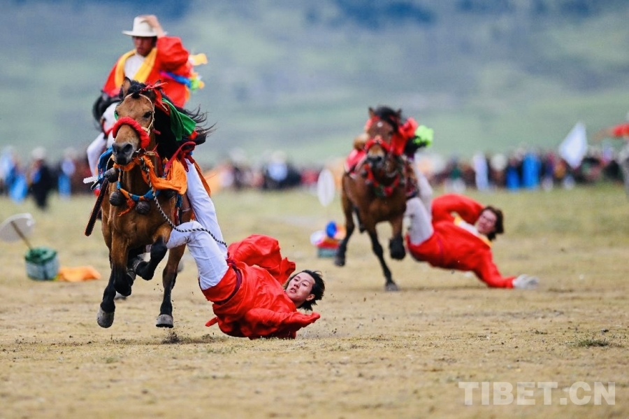 7月31日,上午的“騎馬拾哈達(dá)”比賽中,騎手們高速奔馳中精準(zhǔn)俯身,靈巧地將散落的哈達(dá)一一掠起。下午的“新(老)呷糾賽”將氣氛推向高潮,騎手們在馬背上完成各種高難度平衡動作,力量與柔韌的極致結(jié)合引得觀眾陣陣驚呼。“這是我們祖輩傳下來的本事,看到年輕人練得這么好,心里高興!”觀賽的藏族村民扎西多吉臉上笑開了花。