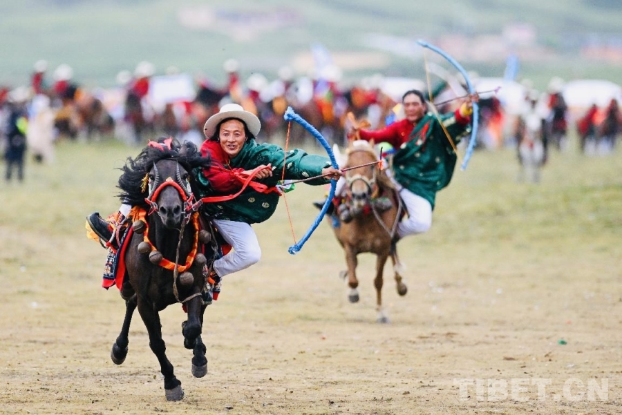 接下來,曲登鄉(xiāng)、禾尼鄉(xiāng)、村戈鄉(xiāng)騎手接連登場,兩輪競演,騎手們駕馭駿馬如履平地。俯身拾哈達(dá)的瞬間,身體幾乎與地面平行。“呷糾”技藝展示時,騎手在馬背上輾轉(zhuǎn)騰挪,打靶環(huán)節(jié)箭矢破空,正中靶心?!斑@些騎手和馬就像是一體的,太厲害了!”現(xiàn)場游客張女士忍不住驚呼。現(xiàn)場的觀眾也被騎手們精湛的騎術(shù)和人馬合一的表演所折服,掌聲如雷貫耳。