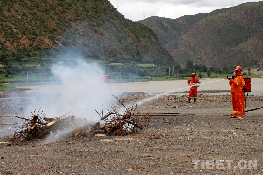 圖為護(hù)林員在消防員指導(dǎo)下開展滅火訓(xùn)練